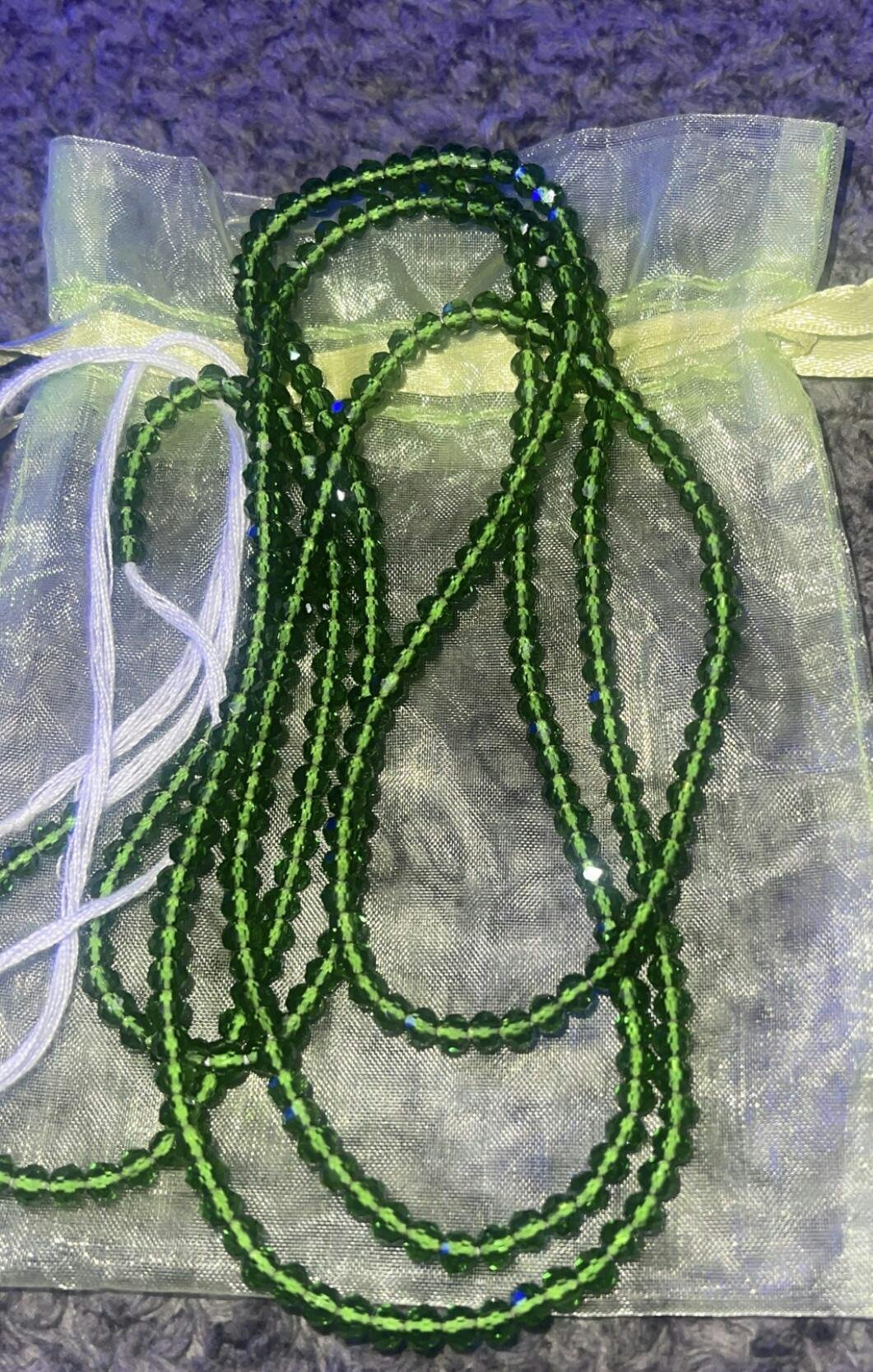 **If you want to be able to take your beads on and off, you will have to tie the beads lower fitting, under your belly button. You can then roll the beads over your head when you are ready to remove them.